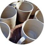 A pochi passi dai boschi e dai campi dell'Appennino emiliano lavoro con argilla e grès. Ogni oggetto, modellato o tornito, rifinito e decorato sempre a mano, è unico nella sua forma, nei suoi decori e disegni. La vicinanza del bosco mi consente di descrivere visivamente momenti di vita animale, rumori e silenzi. Anche evidenti tracce umane come immondizia di tutti i generi… Tal bosc significa “nel bosco” in friulano. Ho unito le due parole.